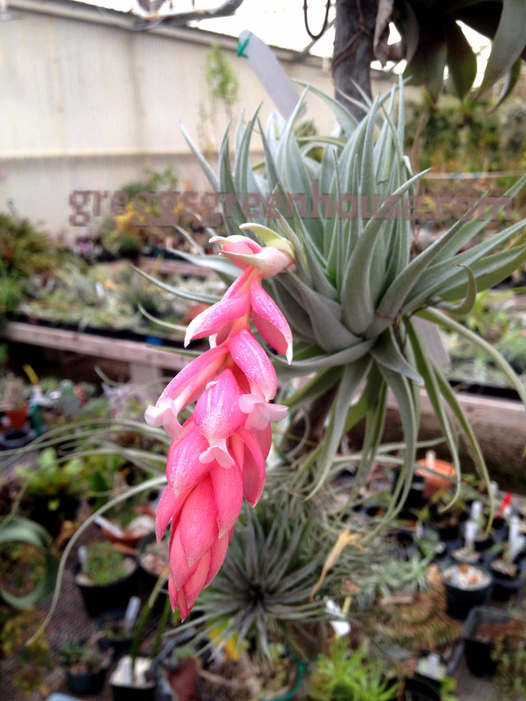 Single rosette with stiff, silvery leaves producing an exceptionally beautiful flower with dark pink bracts and white flowers.  A stunning and easy plant to grow.  One of the parents of T. Houston, (T stricta x recurvifolia), also available for sale here at greggsgreenhouse.com